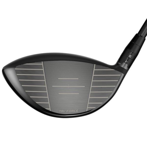 Unreal speed and distance, even on off-center hits, made possible by a breakthrough Tri-Force Face that layers ultra-thin, high-strength Titanium, Poly Mesh, and Carbon Fiber into a fully integrated speed system—a combination never before used in driver face design.