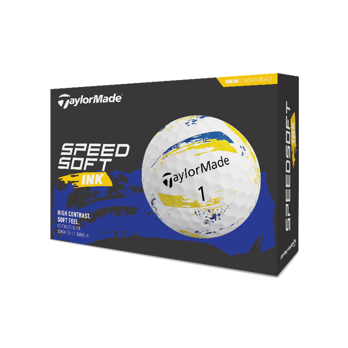 Experience the TaylorMade SpeedSoft Golf Balls Ink Blue/Yellow at Birr Golf Shop. These golf balls are designed for golfers seeking a soft feel and maximum distance. The SpeedSoft range delivers the softest feel from TaylorMade technology.
